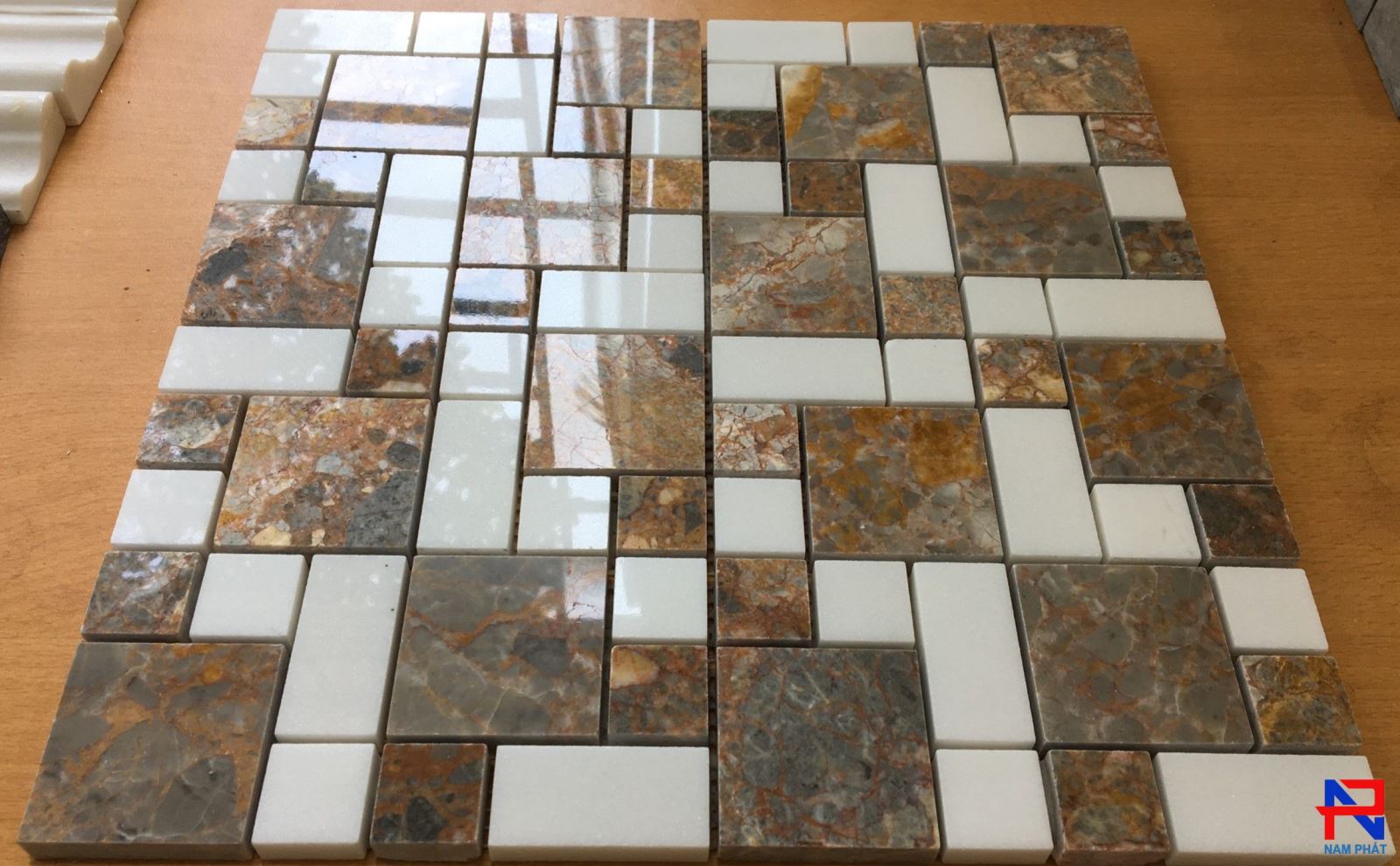 - Mosaic đá tự nhiên có khả năng chống mài mòn, chống thấm nước tốt và khó bị vở vụn. Đa dạng về màu sắc kích thước viên đá tạo nguồn cảm hứng vô tận cho những ai yêu nghệ thuật Mosaic trang trí.