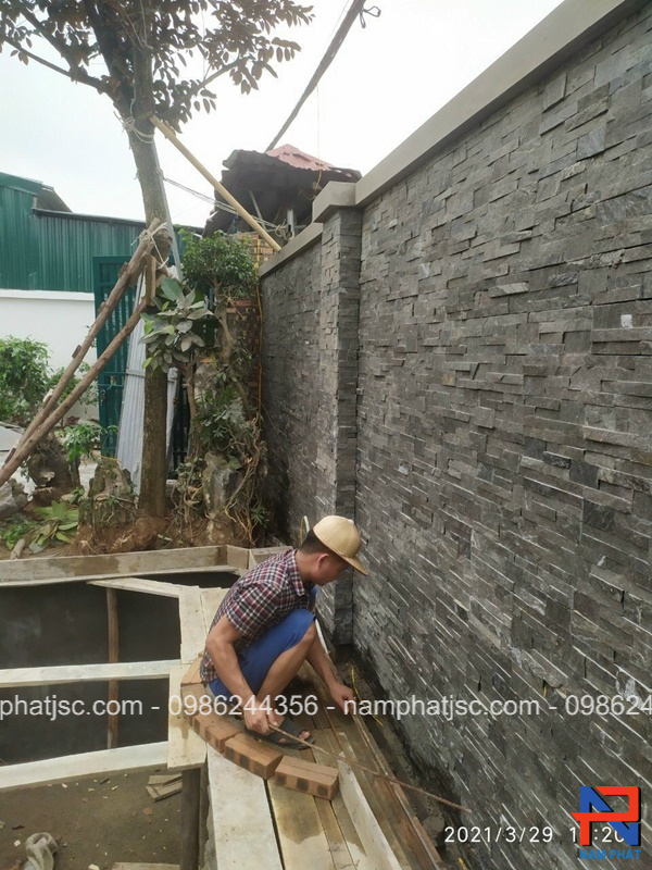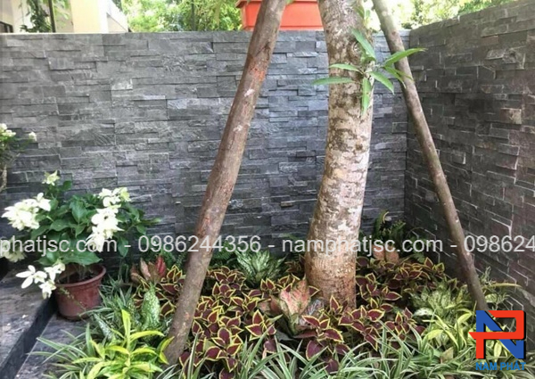 Được tận dụng từ những thanh đá nhỏ ghép thành 1 vỉ lớn có kích thước 10×50 cm bằng keo chuyên dụng nên đá ghép đen ghi Đà Nẵng rất dễ thi công.