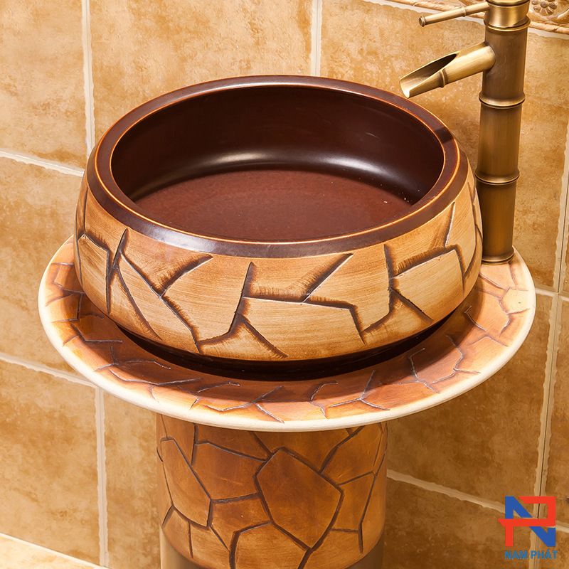 Chậu rửa được thiết kết đặt mặt bàn (lộ thiên), khi kết hợp với bộ xả vòi đồng sẽ mang lại hiểu quả cao nhất về tính thẩm mỹ cho người dùng. Giúp cho không gian thêm sang trọng, độc đáo. Bên cạnh đó, chậu sứ mỹ thuật có độ bền rất cao, màu sắc ổn định dễ vệ sinh và làm sạch trong quá trình sử dụng.