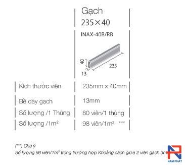 Thông tin chi tiết Gạch thẻ Inax